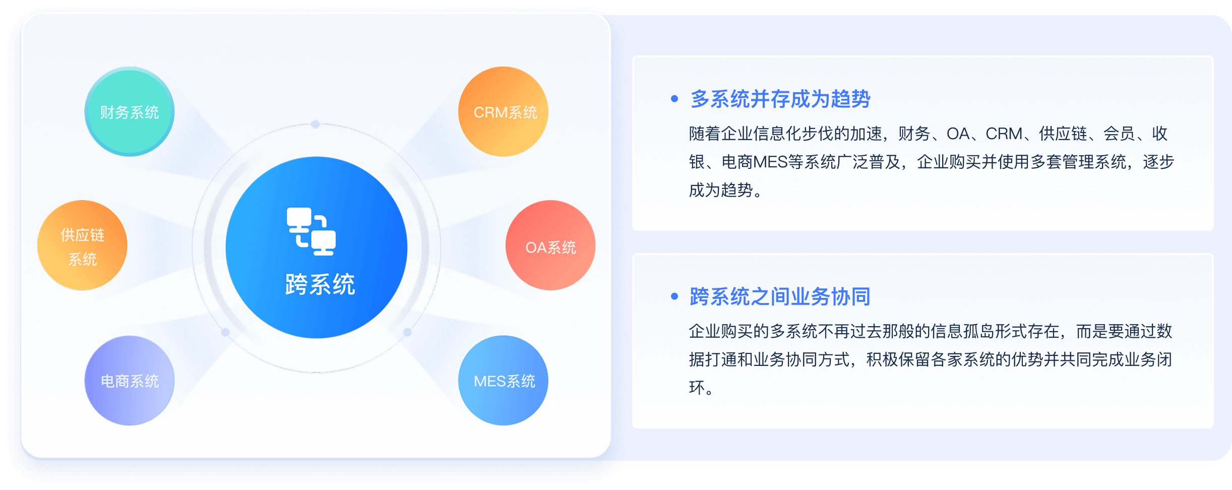企业拥有多套管理系统是趋势,如何解决跨系统之间的业务协同是难题