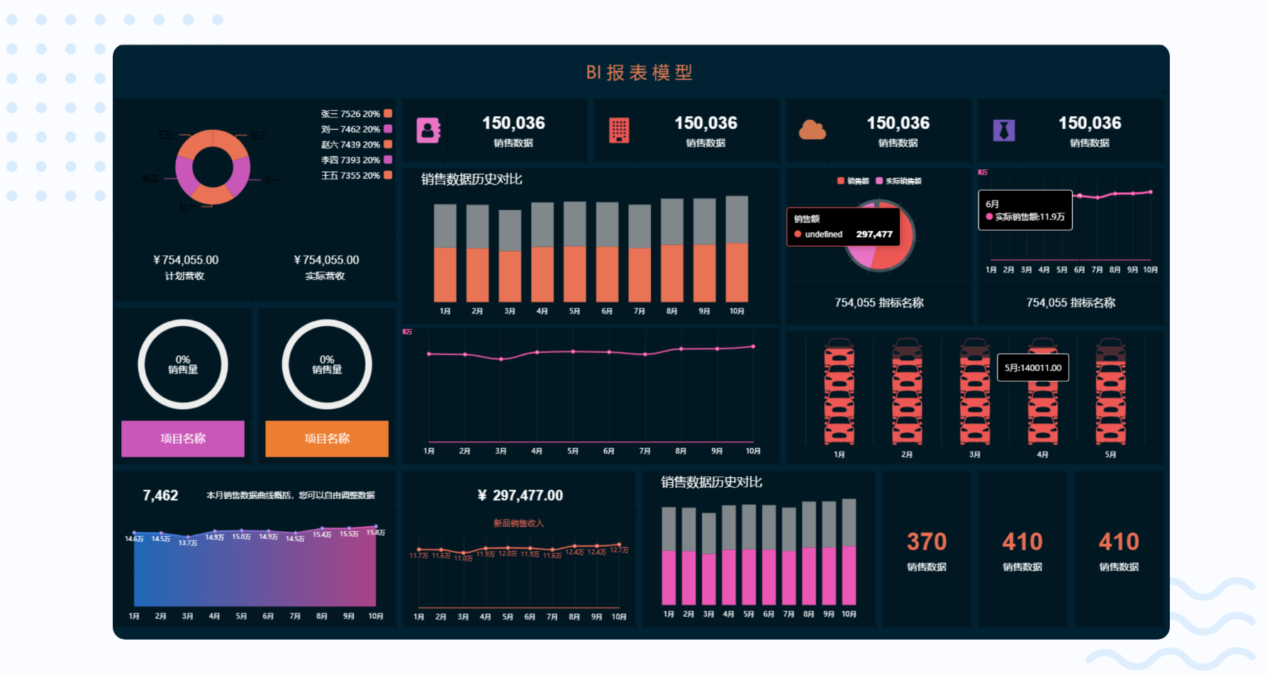仪表板各属性多方位可视化,真正做到零基础、拖拽式、所见即所得,快速建构数据分析驾驶舱