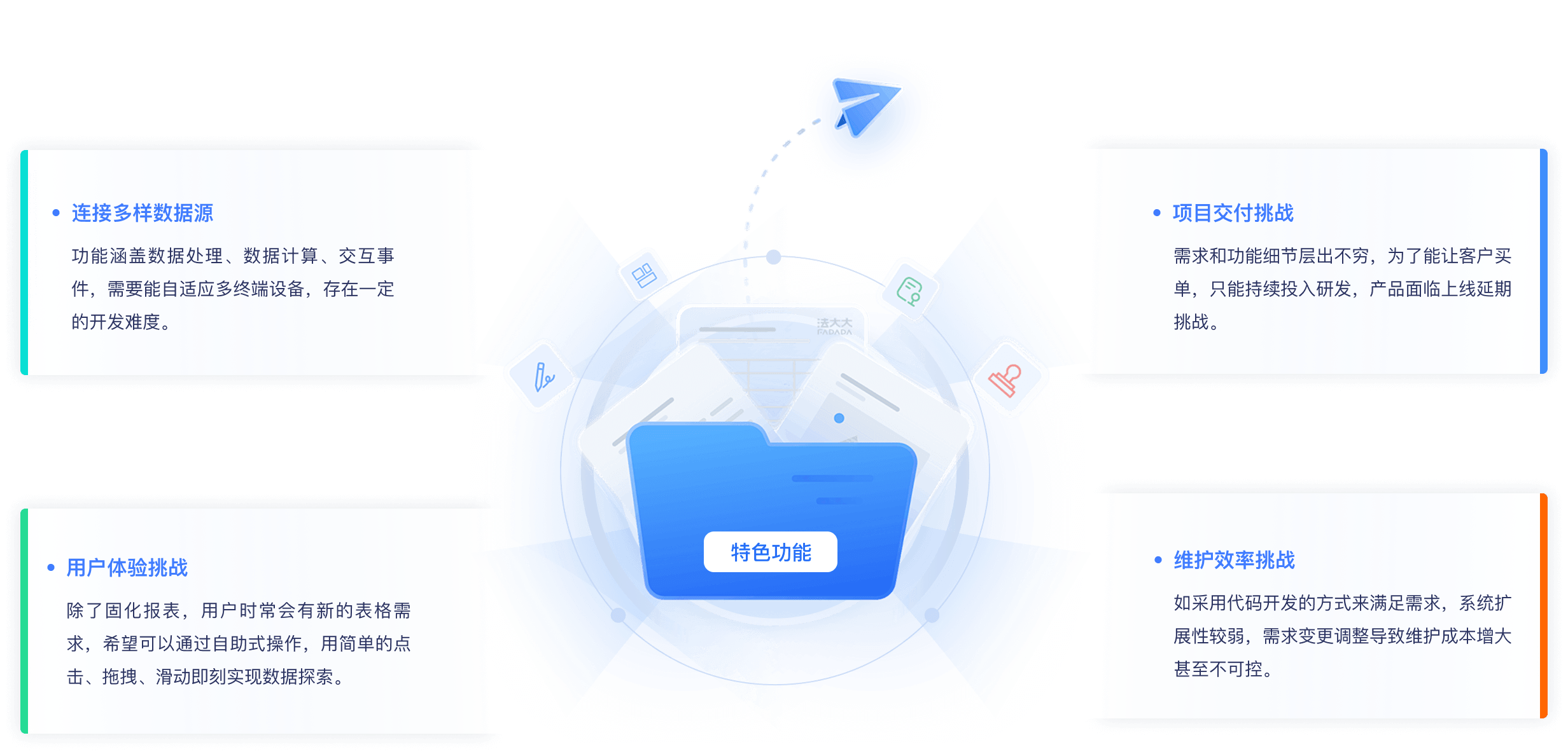 • 赋予自助分析能力:突破报表效果不可控困境,提供自助分析功能,让客户在标准报表基础上主动探索数据,灵活应对多变需求。