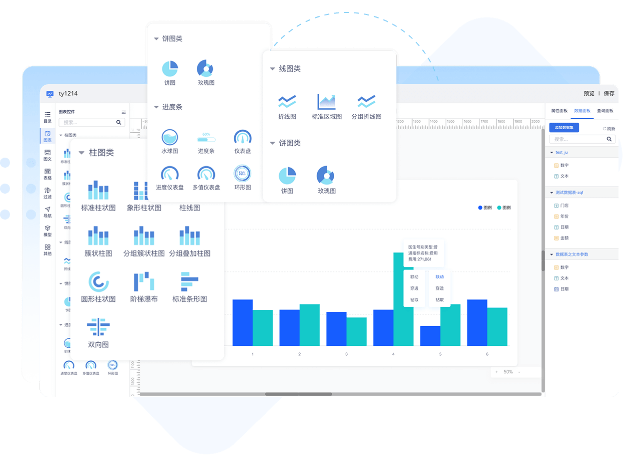 通过内置丰富的图表控件、酷炫动效及强大的交互功能,ISV可以为客户提供更专业、更具吸引力的数据可视化解决方案,提升产品附加值。