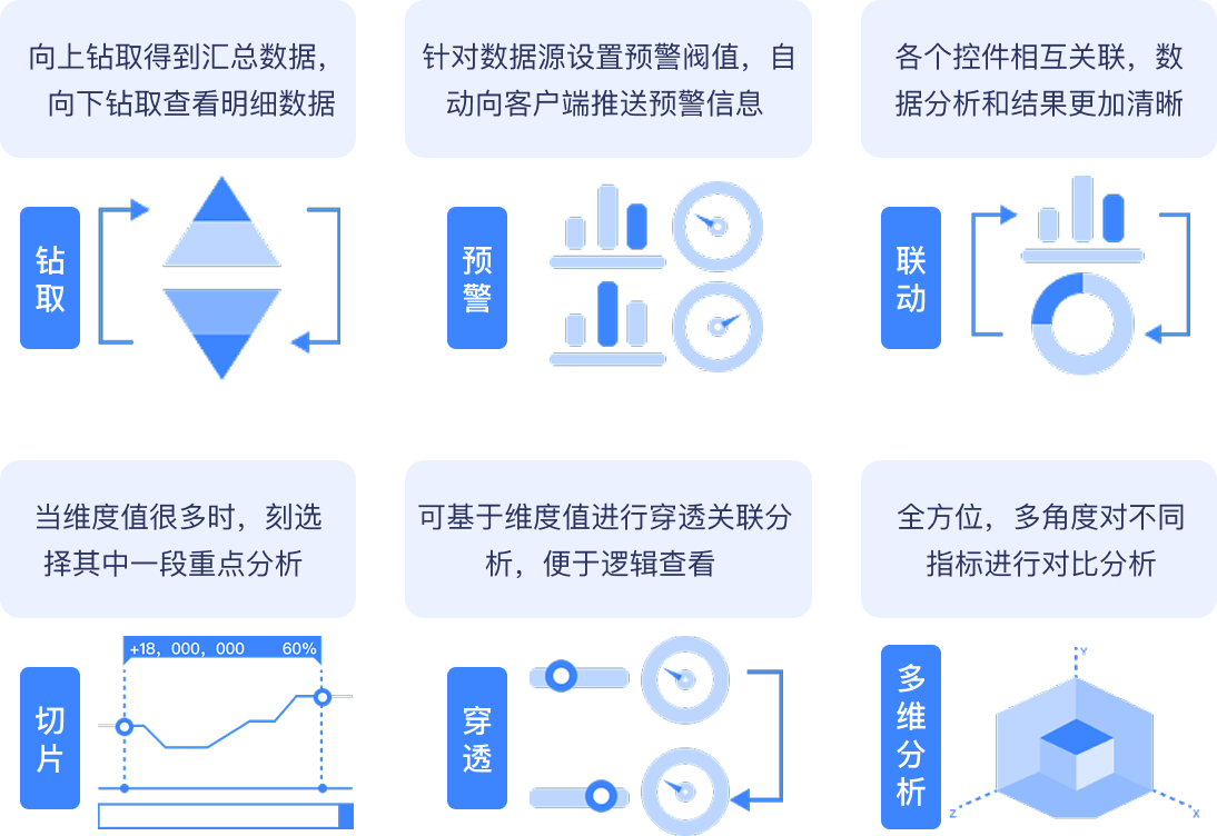 可视化分析工具需要支持复杂的交互功能(如联动、钻取、切片等),这对开发团队的技术能力要求极高,尤其是原生JS引擎的开发与优化,难度较大。