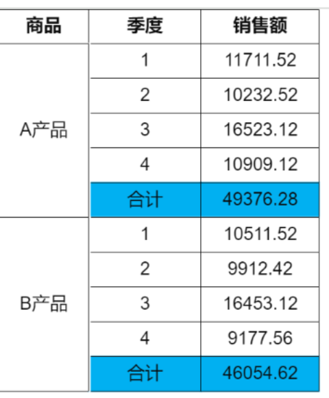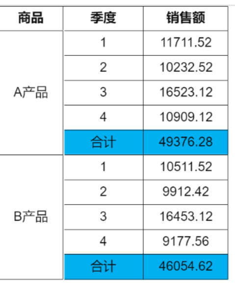 纵向分组小计:在报表中对单元格进行纵向分组,并计算不同分组内的数据总和。