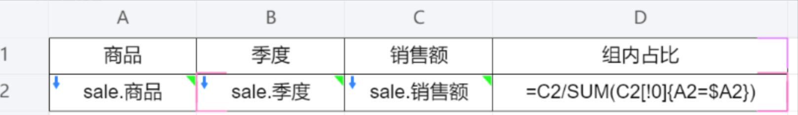 占比的公式说明: