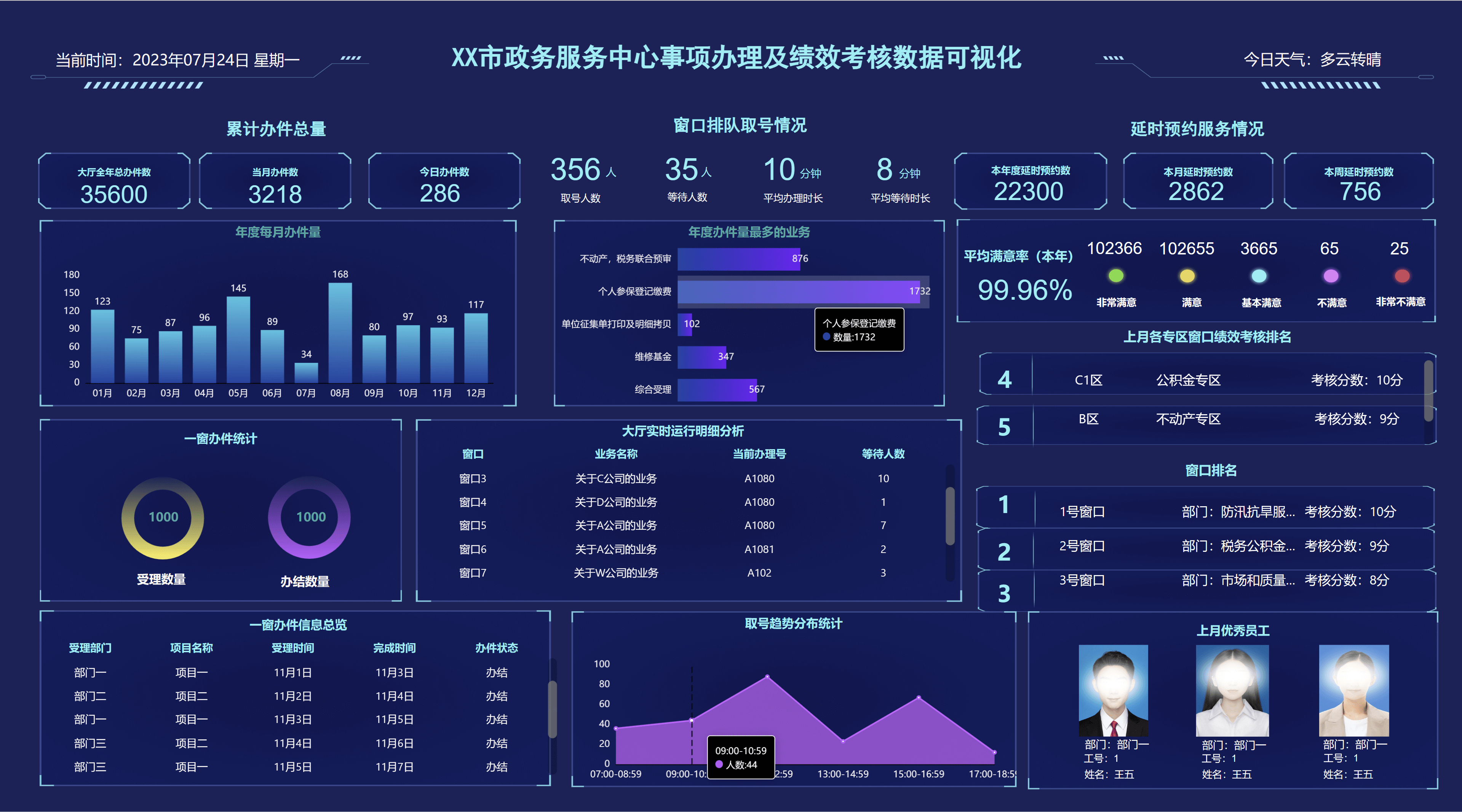 6. 展示成果和形象:政务数据大屏可以展示政府和企业的成果和形象,提高公众对政府和企业的信任度和满意度。