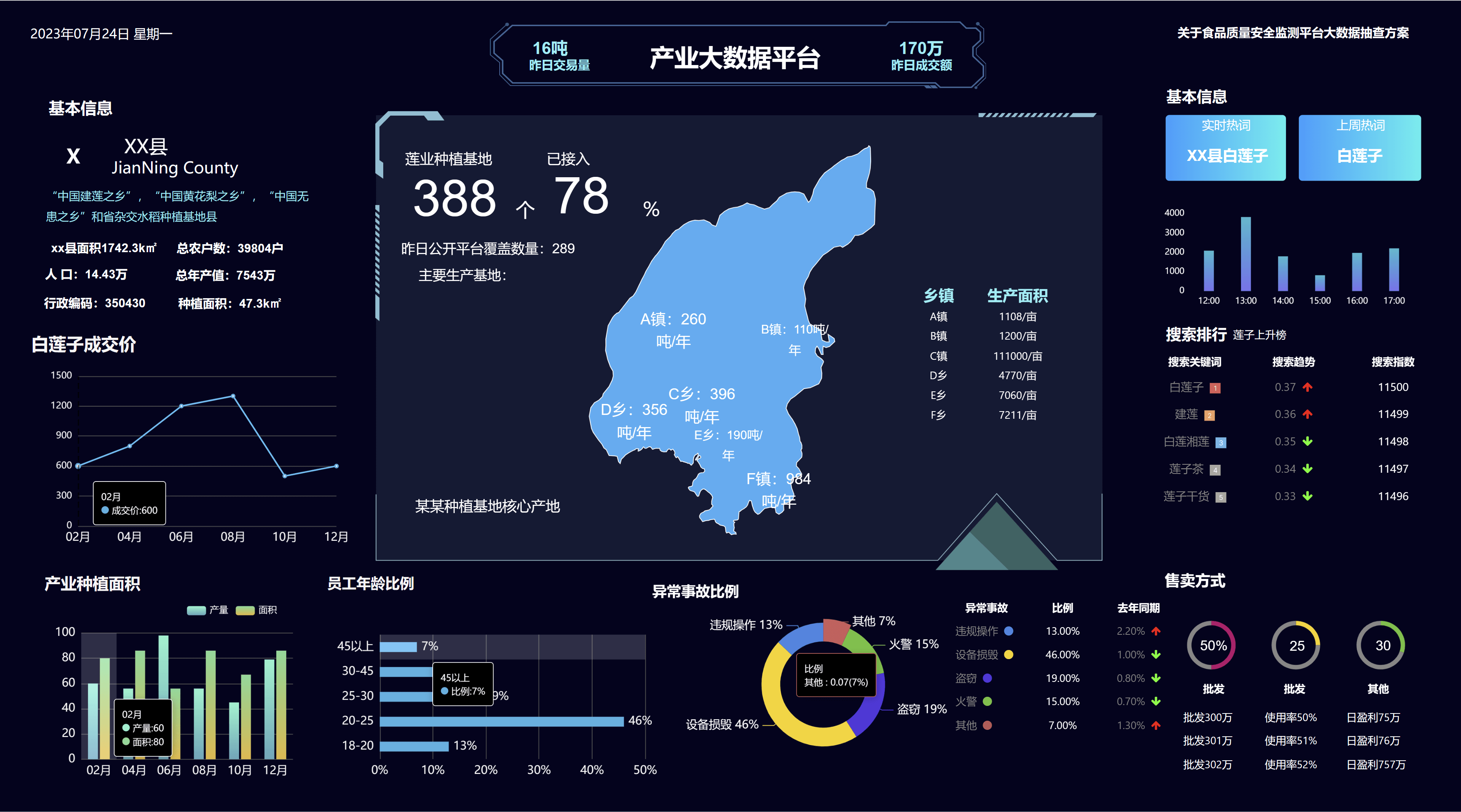 方案介绍 智慧政务数据大屏方案指的是整合省社会经济发展资源,打造集数据采集、数据处理、监测管理、预测预警、应急指挥、可视化平台于一体的大数据平台,以信息化提升数据化管理与服务能力,及时准确掌握社会经济发展情况,做到“用数据说话、用数据管理、用数据决策、用数据创新”,牢牢把握社会经济发展主动权和话语权。